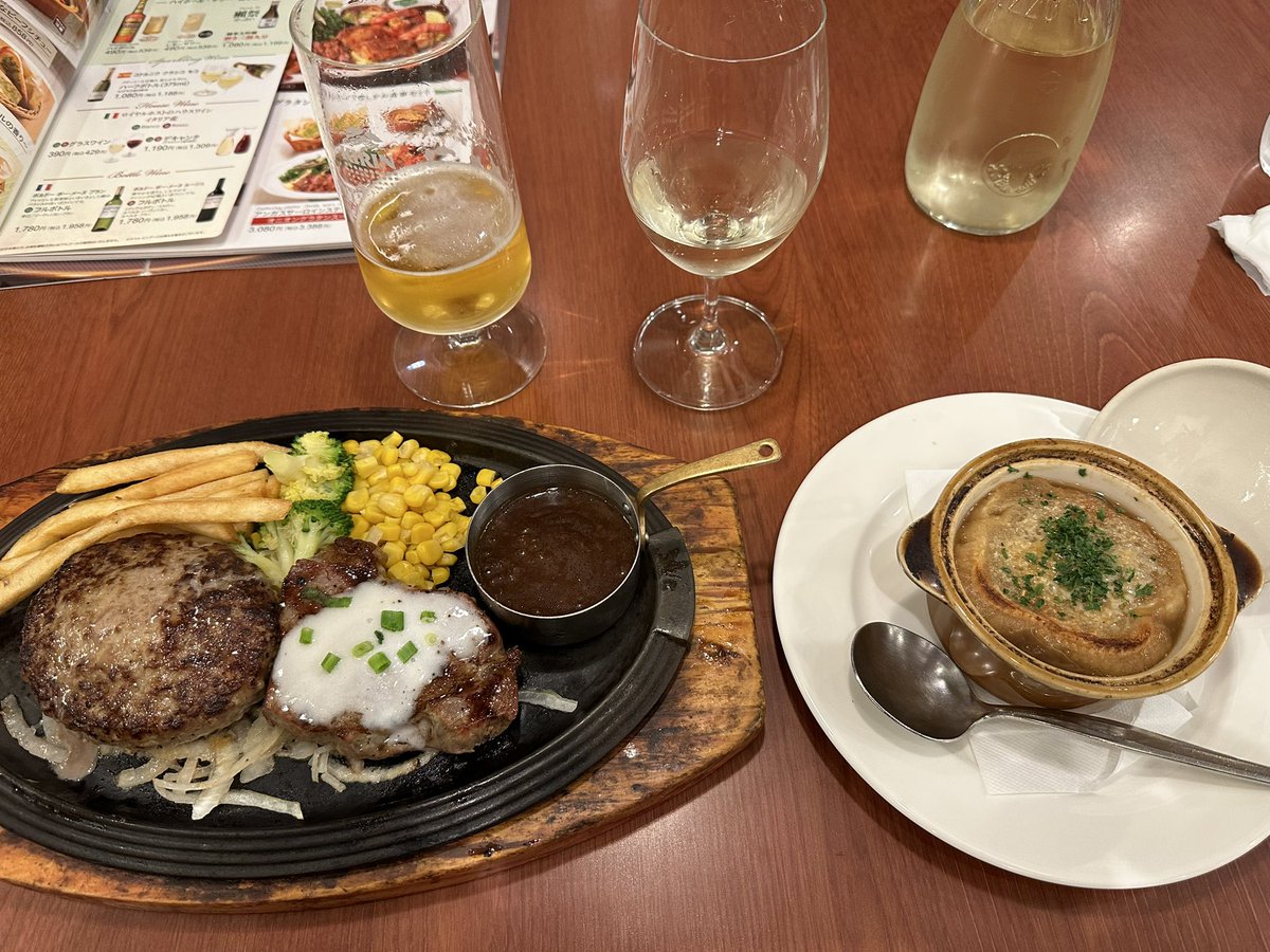 仕事で思わぬ救急こなしてクタクタ どうしても肉が食べたくて しかもレストランとか専門店でないヤツ ファミレスのこういうハンバーグとステーキが無性に食べたくなった わかる人はわかるよね?(;ω;)マイフレンド
