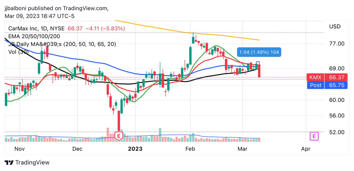 Nice to be short $MS, $ALLY, $JPM, and $KMX today. Had $SIVB and covered like an idiot. Have others too like $CARS, $AAPL, and $TSLA.